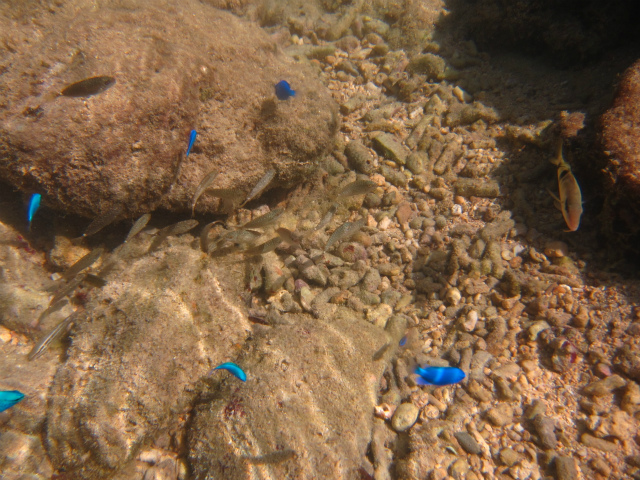 笑砂辺のイノー(潮だまり)ではルリスズメダイも見れます