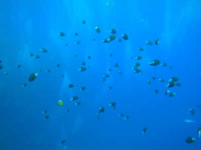 クロスズメダイやヤマブキベラも、たくさん近づいてきました