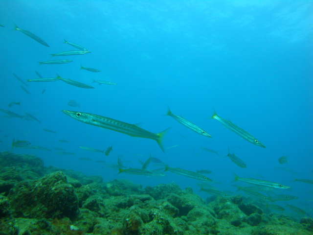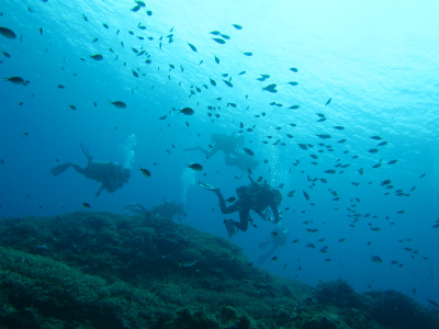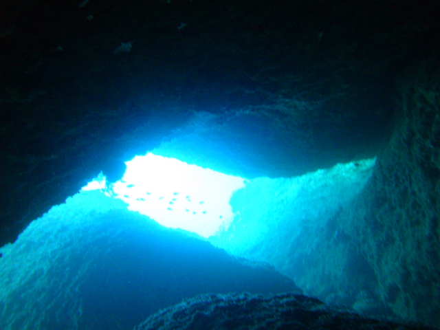 ウツボ、カマス、ハナミノカサゴなどを見ながら徐々に青の洞窟へ。