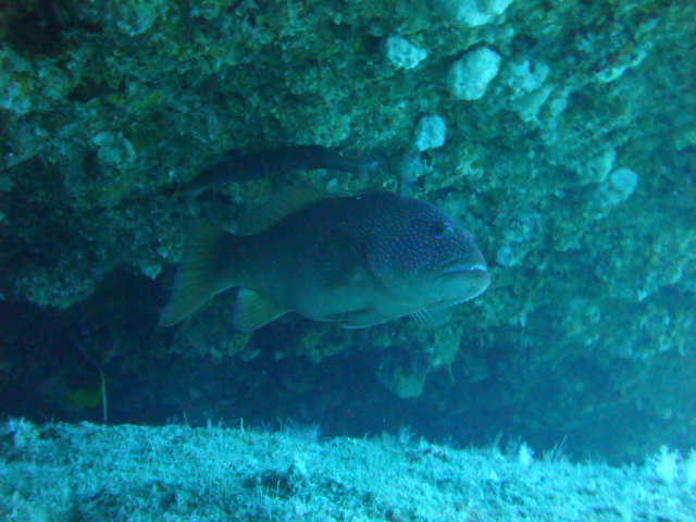 小さな穴の中に潜むギンポや、暗い所に潜むアカマツカサ、壁沿いに乱舞するハナゴイ・アマミスズメダイなどなど。