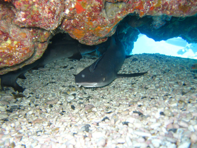 岩陰にはネムリブカ(通称:ホワイトチップ)も2匹潜んでいて、ラッキー