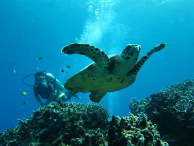 アオウミガメと、タイマイ、2種類のウミガメに会うことが出来ました
