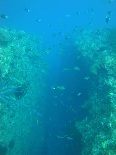 細い通路のような岩場を抜けたり、壁沿いをゆっくり漂ってみたり