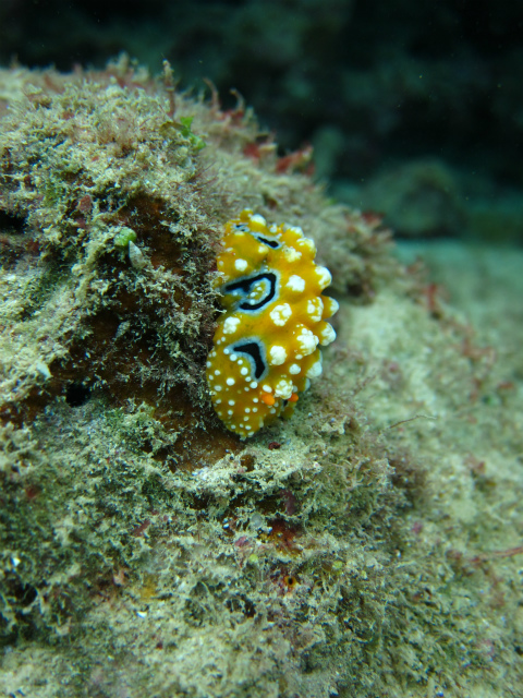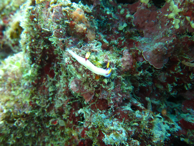 水中でもとっても綺麗な色のゾウゲイロウミウシ。