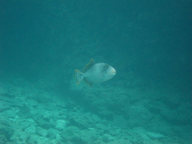 砂辺にこんな魚いたかな?キヘリモンガラ