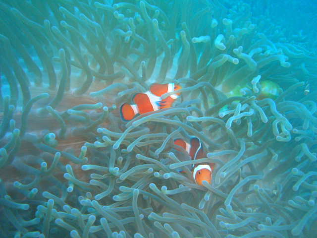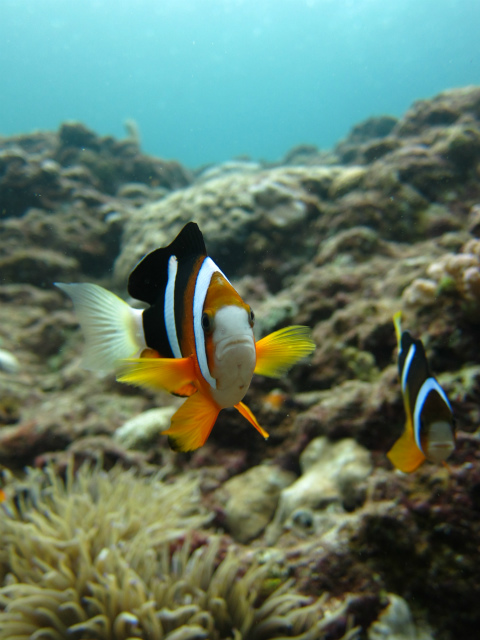 浅場にいるクマノミの親子