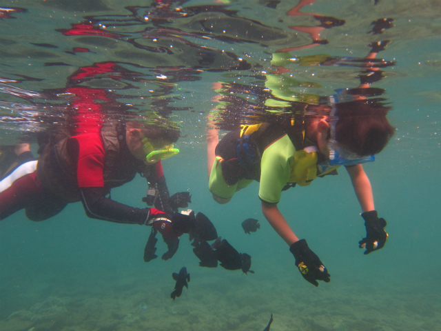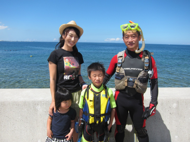 お父さんとお母さんはダイバーだそうで、今回は息子さんのYUUくんと、お父さんのTAKUOさんがシュノーケリング