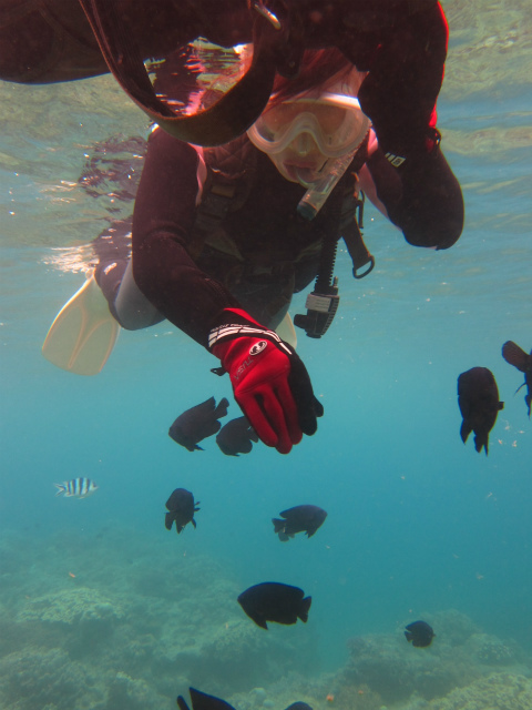 以前に海外でダイビングをしたのですが、説明が少なかったので、呼吸に不安を感じながらダイビングしたので、魚を見ることを充分に楽しめなかったのですが、今回は、担当の安田さんがとっても丁寧に説明してくれたので、本当に安心して、充分に楽しむことができました。