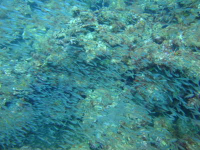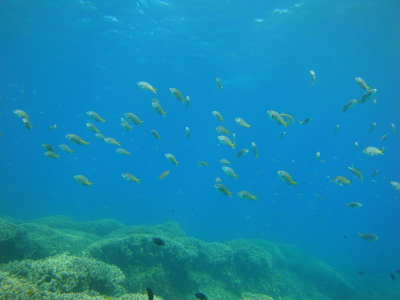 クロスズメダイやヤマブキベラも、たくさん近づいてきました