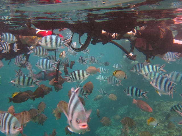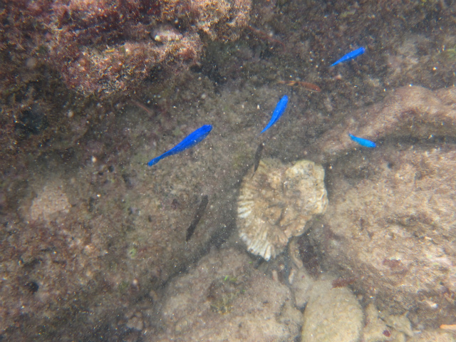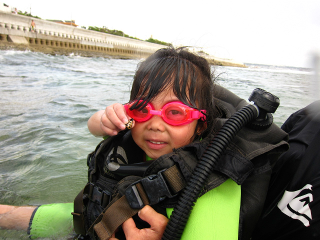 まだシュノーケリングは難しいので、ゴーグルをし、BCをライフジャケットにして、キジムナーが付きっ切りで磯遊びと、水面からお魚を覗いて遊びました