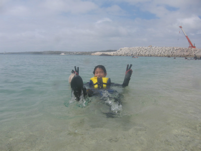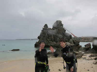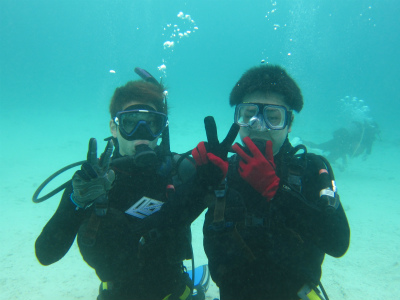 お1人はライセンスを取ったばかりで、初沖縄ダイブ。もう一方は体験ダイビングです。