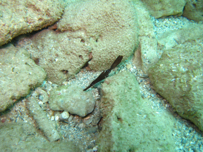 枯葉に擬態している、カミソリウオ。