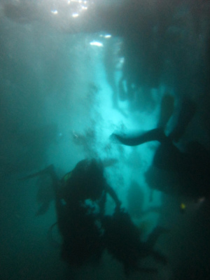 GWの影響でシュノーケリング、体験ダイビング共に多く、洞窟内は人で溢れ、濁りが…