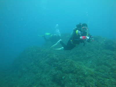 ダイバーなのに、フィンを脱いで水中を飛ぶ