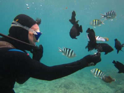 耳抜きがしにくかったですが、がんばって魚に餌付けもできました