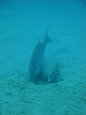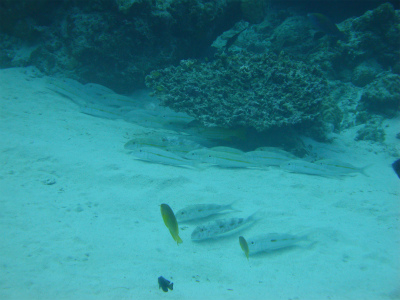 お昼休みを挟んで、お次はアリガー。島と島とを結ぶケーブルが海底を走り、所々に根がありますが、全般的に砂地のポイント。停泊地から南に進んでブイを探し、そこを基点に西(沖)へと進む。水深が16、7mとなったところで今度は北へ進み、砂地を横断。北側のケーブル伝いに東へ進んで、ブイに当たったら南へ進む、という風に、ポイントで大きな四角形を描くルートで、いざ勝負!