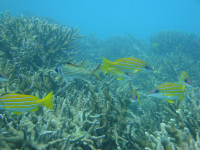 で痛い日射しヨスジフエダイやアカヒメジが
