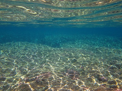 海底が水面で鏡のように反射しています