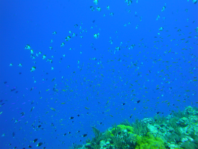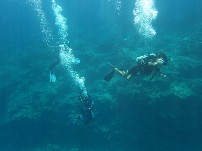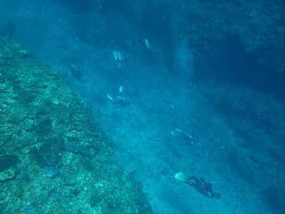 透明度もよく、シュノーケルで14m程にいるダイバーも目視できました。