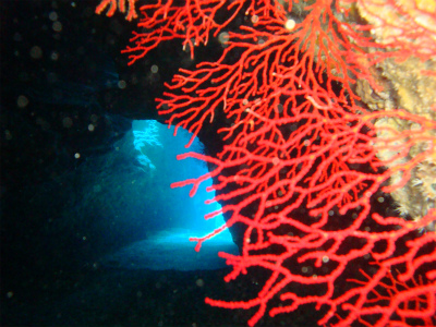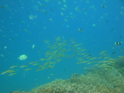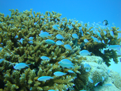 1本目はイソバナが多く、棚の上はハードコーラルが綺麗なポイント