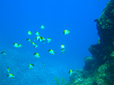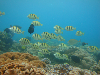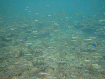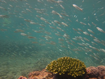 水中は、グルクンの群や、ウメイロモドキ達。