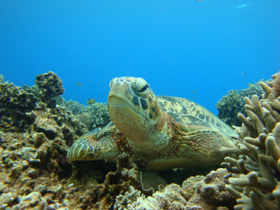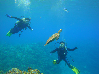 タイマイ、アオウミガメにも会えましたよ。