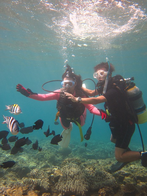 体験ダイバーの最高齢は74歳のお客様で、海が怖かったお客様も、当店のダイビングは楽しんで頂けています。