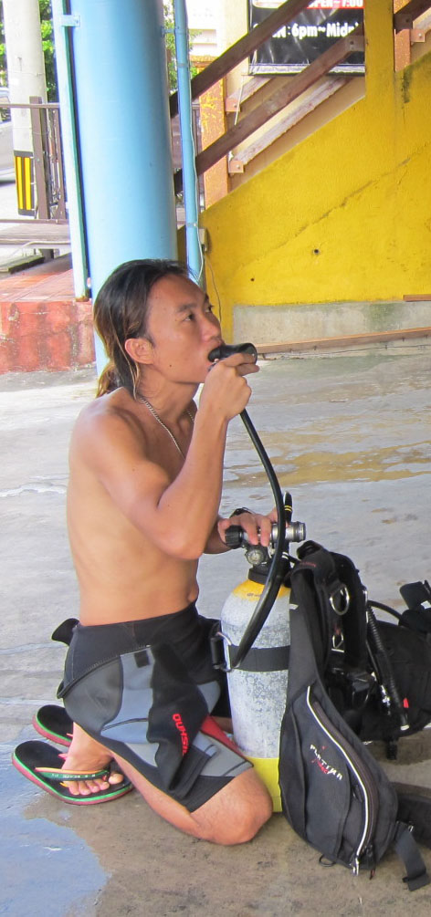 穏やかなトークと、ゆったりダイビングでお客様を虜にする。