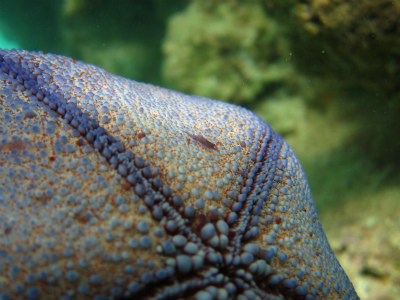マンジュウヒトデにひっそり住んでいる、ヒトデヤドリエビ?