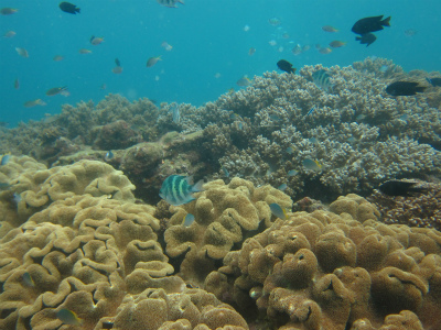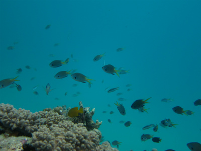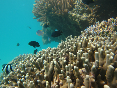 ハードコーラルには沢山の小さなスズメダイ達が