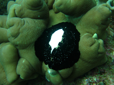 真っ白な貝殻と真っ黒な体が綺麗な、ウミウサギガイ